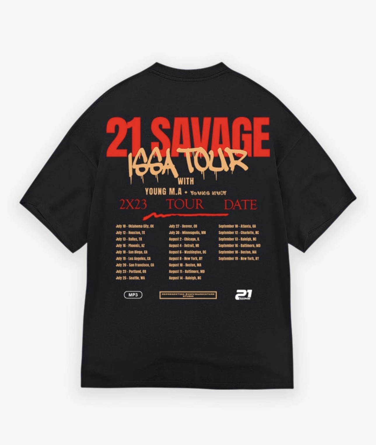 Heritage Tour Graphic: Features a large back-print commemorating the original 29-date Issa Tour lineup, including special guests Young M.A, Tee Grizzley, and Young Nudy.