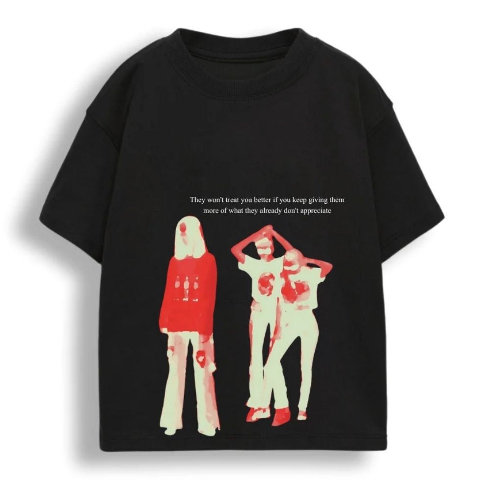 The Vibe Navigate the complexities of human connection with the Appreciated Lessons Oversized Tee. This design features a thought-provoking message paired with a high-contrast, infrared-style graphic of three figures. Set against a deep midnight canvas, it blends streetwear aesthetics with raw, emotional storytelling, making it a definitive piece for those who wear their philosophy on their sleeve.