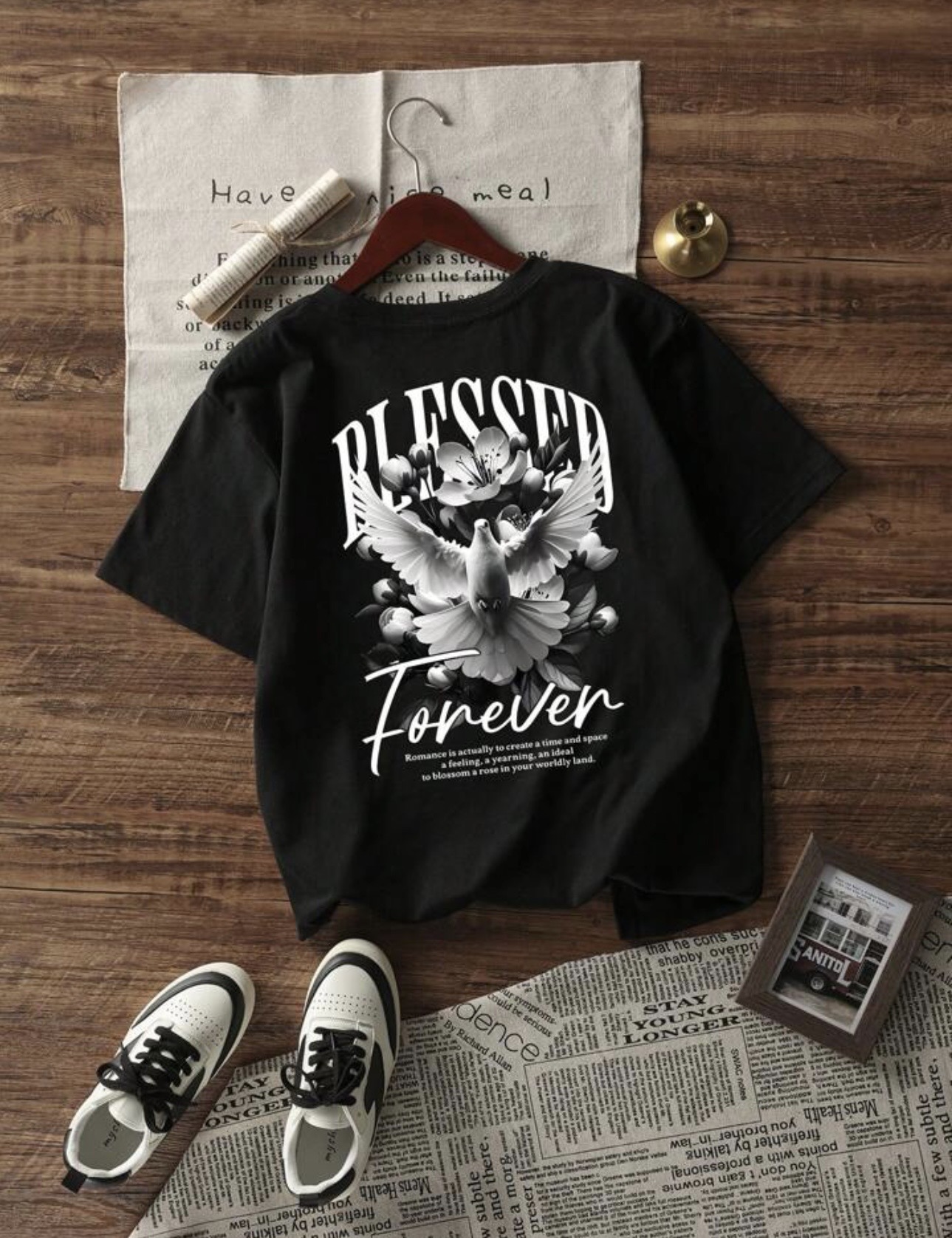 • Bold “Blessed” Branding: Topped with the word “BLESSED” in a heavy, white sans-serif font, balanced by the cursive “Forever” script below.