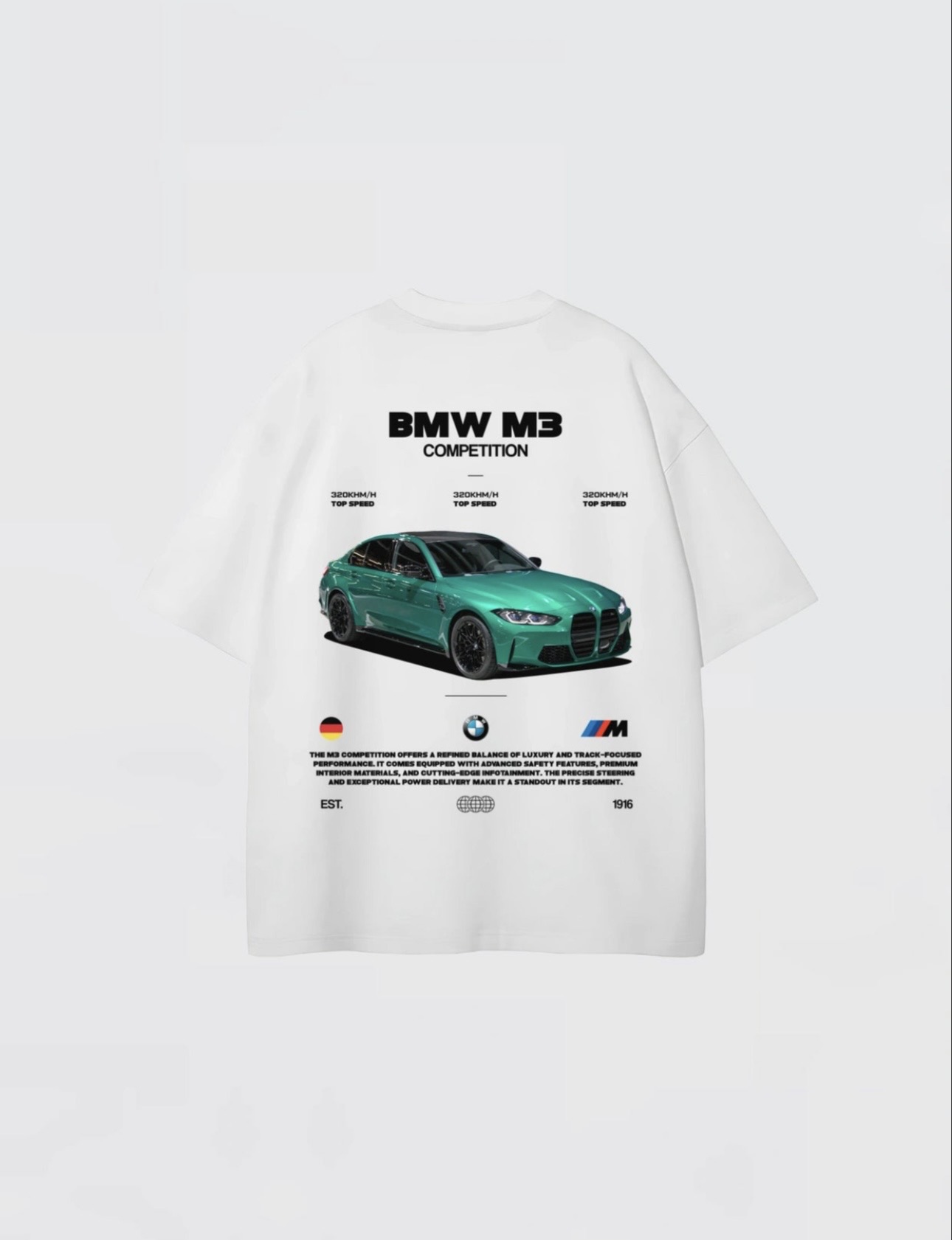 The Vibe Engineered for those who live on the edge of the redline, the M3 Competition “G80 Apex” Oversized Tee celebrates the most aggressive era of the BMW M3 lineage. This piece features a technical, high-resolution back graphic that captures the muscular presence of the G80 Competition. Set against a deep midnight black canvas, the sharp white technical schematics and vibrant “Competition” accents mirror the precision of the S58 twin-turbo engine. It is a definitive staple for automotive enthusiasts who respect the fusion of track-ready performance and brutal, modern design.