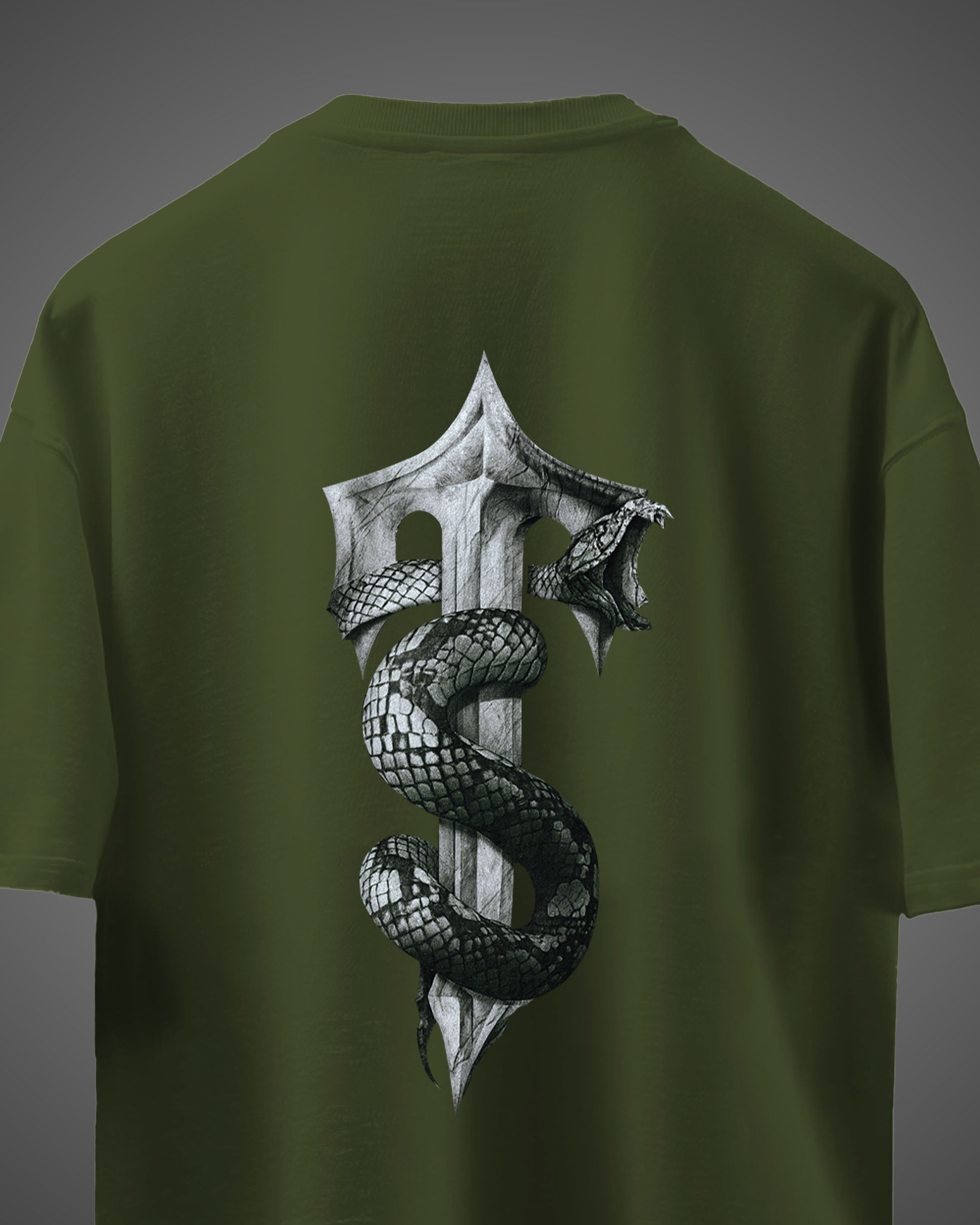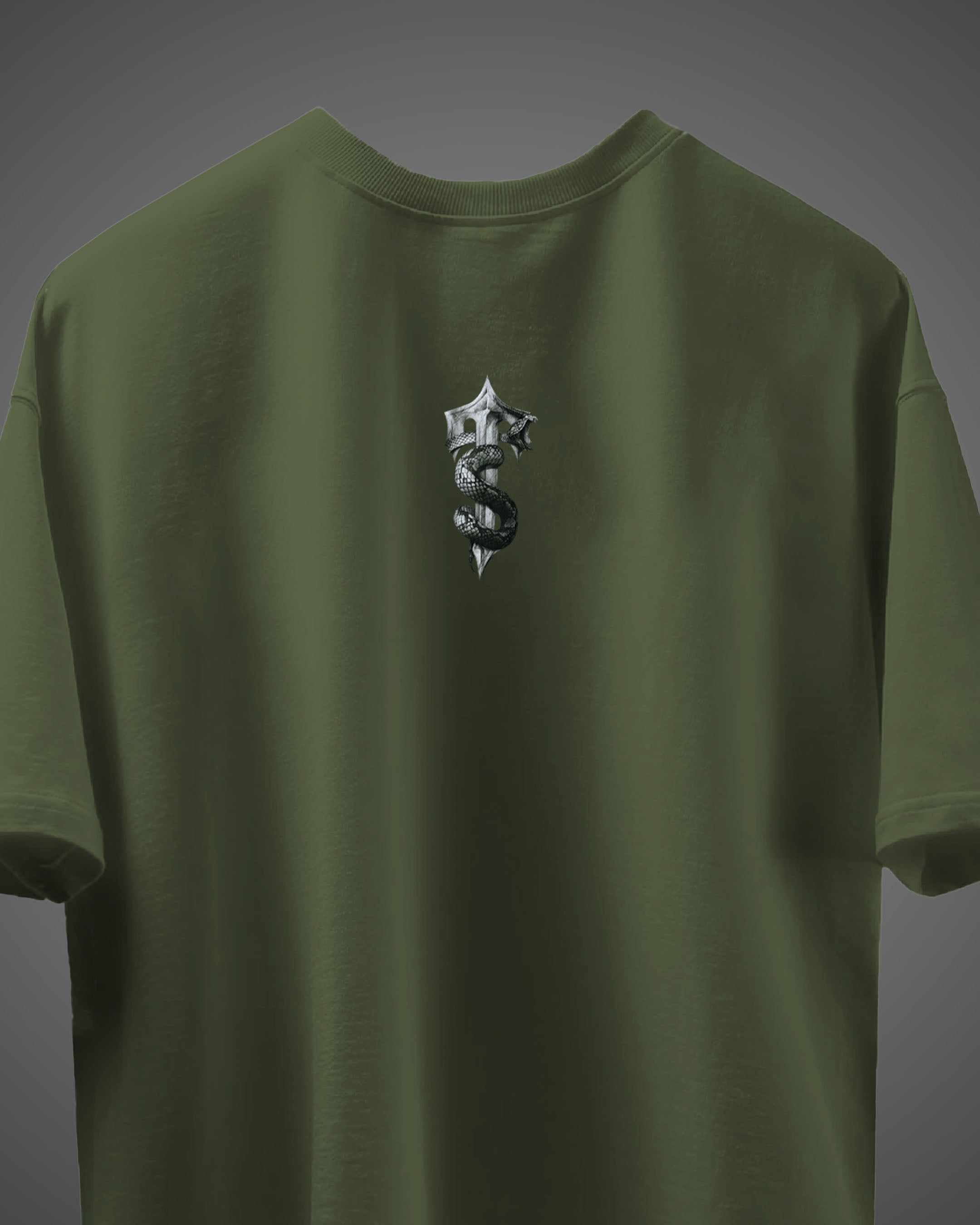 The Vibe Channel a cold, calculating energy with the Aura-Core “Dark Venom” Oversized Tee. This piece is a masterclass in aggressive, serpentine aesthetics, designed for those who strike with precision and move with silent authority. The design features a lethal, hyper-realistic cobra coiled around a sharp, architectural dagger or “T-spike” emblem, symbolizing the fusion of organic danger and industrial edge. Its architectural, boxy silhouette provides a heavy-weight, “Apex-Predator” drape that commands respect in any urban environment. It is the definitive choice for the disruptor who values a look that is as sharp as it is venomous.