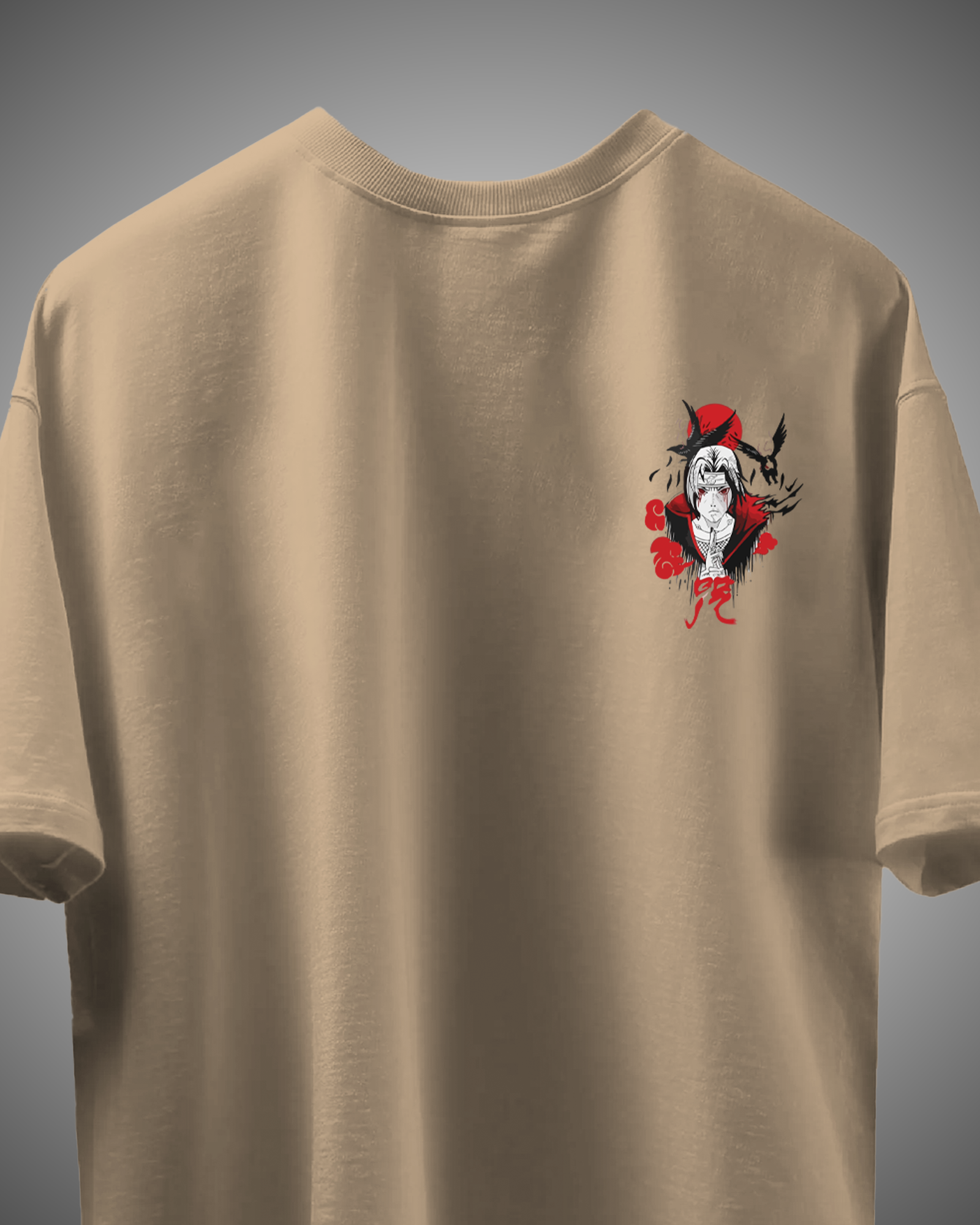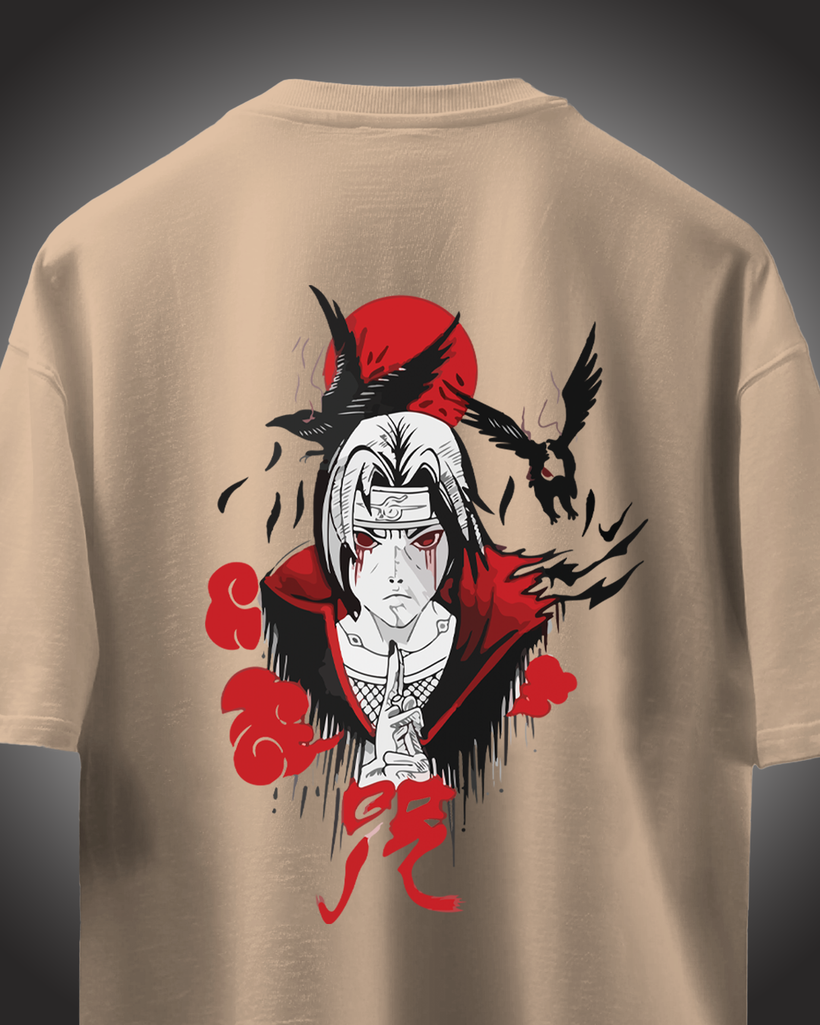 The Vibe Step into the shadow of the Crow with the Shinobi-Series “Itachi Uchiha” Oversized Tee. This piece is a masterful tribute to the tragic hero of the Hidden Leaf, capturing the haunting elegance of the Akatsuki’s most formidable prodigy. The expansive back print features a high-contrast illustration of Itachi, his Mangekyō Sharingan active and bleeding, framed by the iconic red clouds of his organization and a pair of soaring crows. Its architectural, boxy silhouette provides a heavy-weight, “Anbu-Grade” drape that offers a sharp, structured fit for those who carry their own truth in the darkness. It is the definitive choice for the fans, the strategists, and the urban shinobi who know that true strength is found in sacrifice.