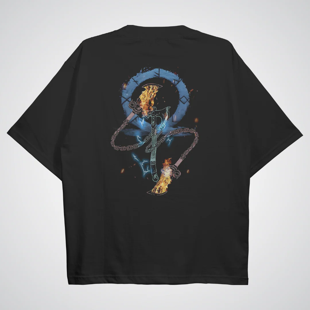 Defy the fates with the Kratos “Ghost of Sparta” Oversized Tee. Featuring a technical “Ash and Ember” graphic and iconic blood-red tattoo accents on a premium heavyweight black base, this tee is a powerful tribute to the resilience, rage, and redemption of the God of War.