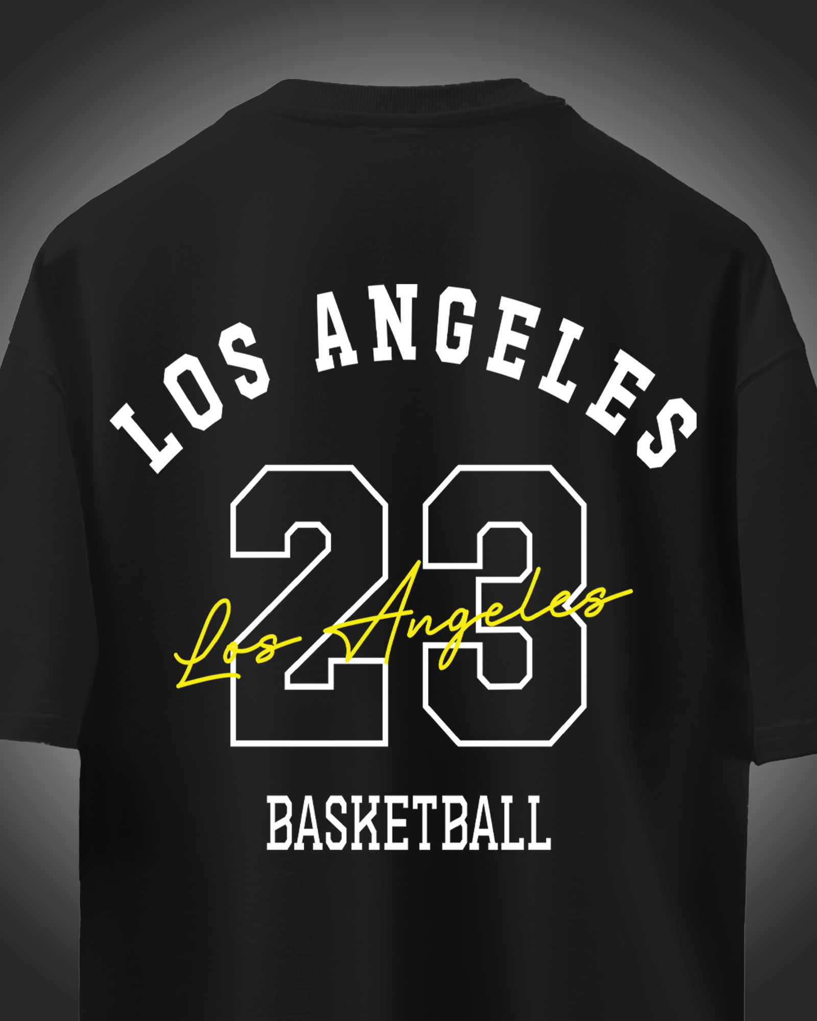 The Vibe Rep the city of angels and basketball excellence with the Pro-Series “Los Angeles 23” Oversized Tee. This piece is a clean, high-impact tribute to the hardwood legacy of Southern California, designed for those who carry the “Mamba Mentality” in every aspect of life. The back design features a massive, white-outlined “23” in a classic varsity block font, anchored by an arched “LOS ANGELES” header. Its architectural, boxy silhouette provides a heavy-weight, “Pro-Cut” drape that balances athletic heritage with modern street-style proportions. It is the definitive staple for the ballers, the fans, and anyone who understands that in LA, greatness isn’t just a goal—it’s the standard.