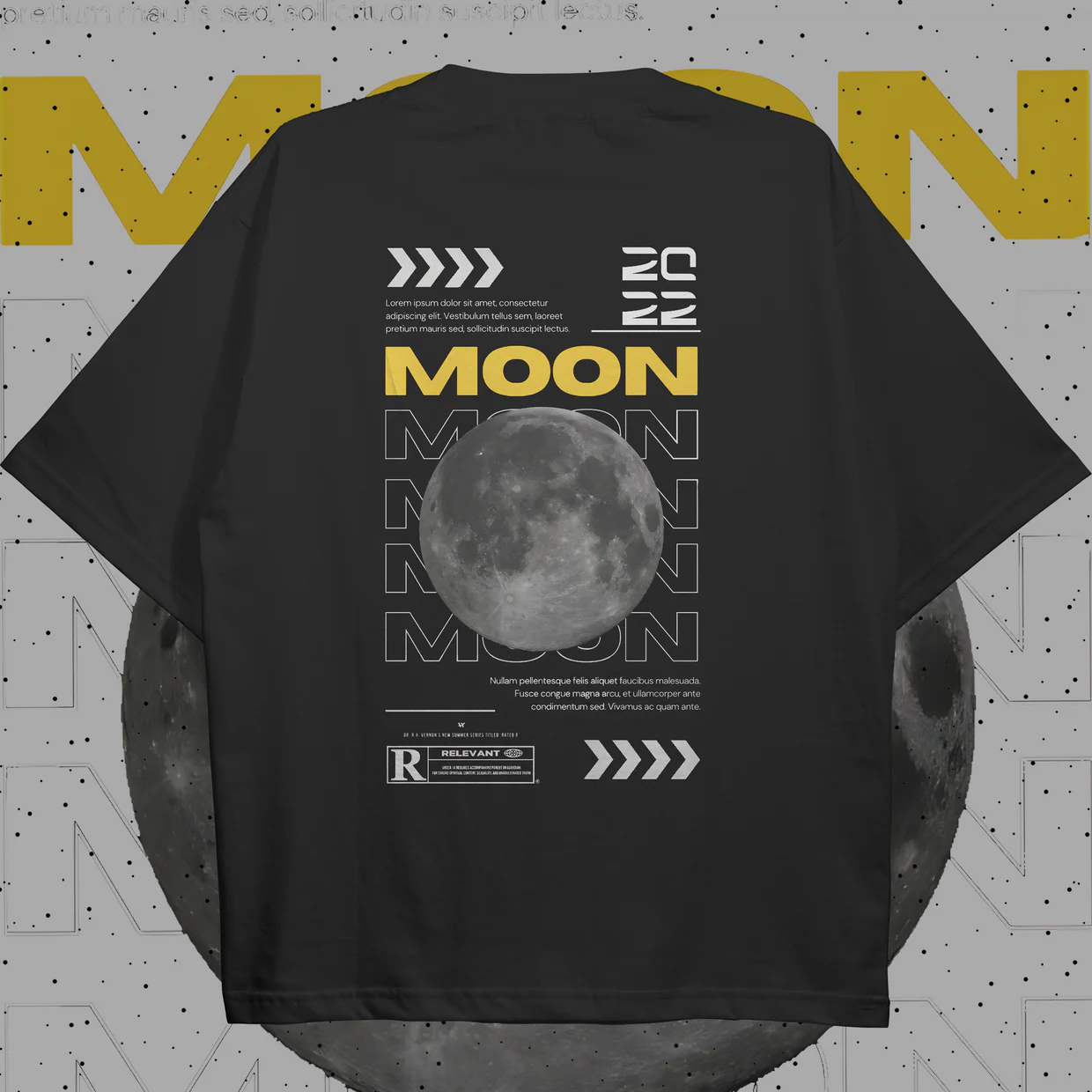 The Vibe Capture the cold, silent majesty of Earth’s only natural satellite with the MOON “Luminescence & Logic” Oversized Tee. This design contrasts the ancient, cratered surface of the Moon with the sharp, technical data of lunar exploration. Set against a deep midnight black canvas, the back graphic features a high-definition “Far Side” lunar map, rendered with silver metallic textures that mimic the way moonlight cuts through the dark. It is a definitive staple for the night owls, the dreamers, and the scientific minds who find solace in the quiet orbit of the lunar cycle.