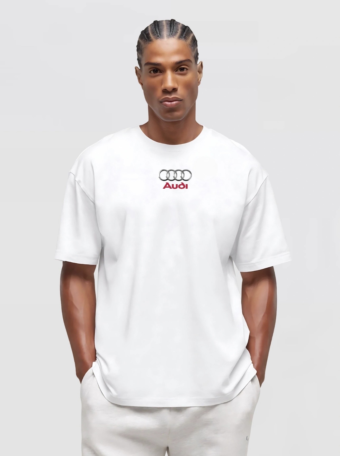 Unleash the power of the rings with the R8 Spyder V10 Oversized Tee. Featuring a technical performance-spec graphic and iconic “quattro” branding on a premium heavyweight black base, this tee is a bold, high-octane tribute to the pinnacle of Audi?s supercar engineering.