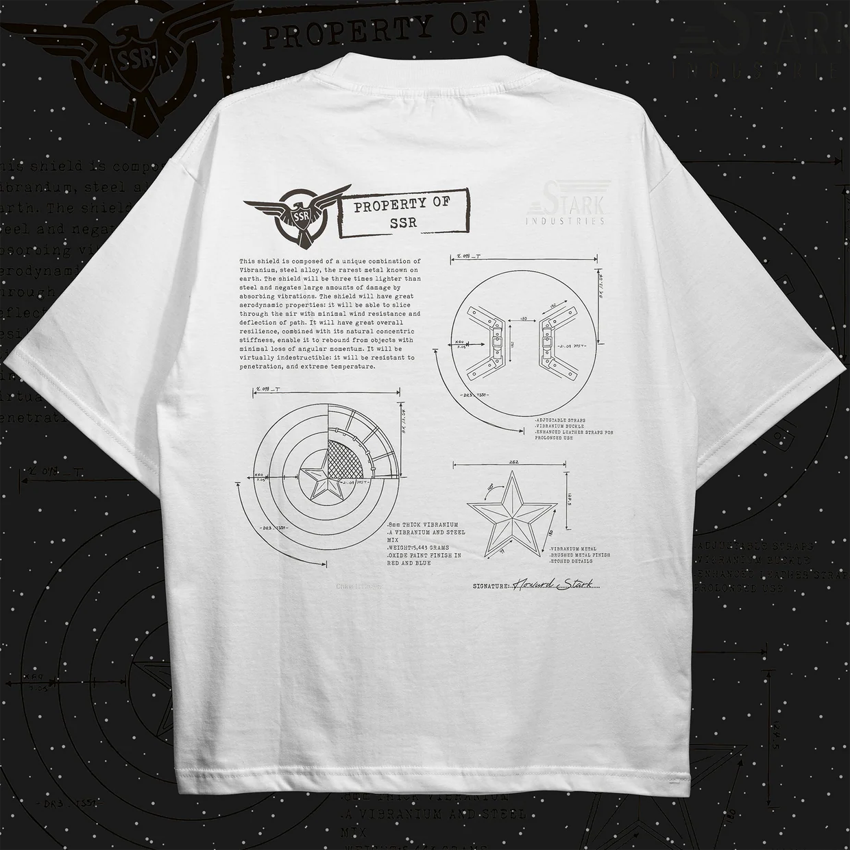 The Vibe Step into the high-stakes world of billionaire industrialist and engineering genius Tony Stark with the Stark “Technological Superiority” Oversized Tee. This design moves away from the classic red-and-gold aesthetic, opting instead for a technical, “black-site” laboratory look. Set against a deep midnight black canvas, the back graphic features a wireframe schematic of the Mark LXXXV armor, centered around the iconic Arc Reactor. It is a definitive staple for the innovators, the modern-day visionaries, and those who believe that “the suit and the man are one.”