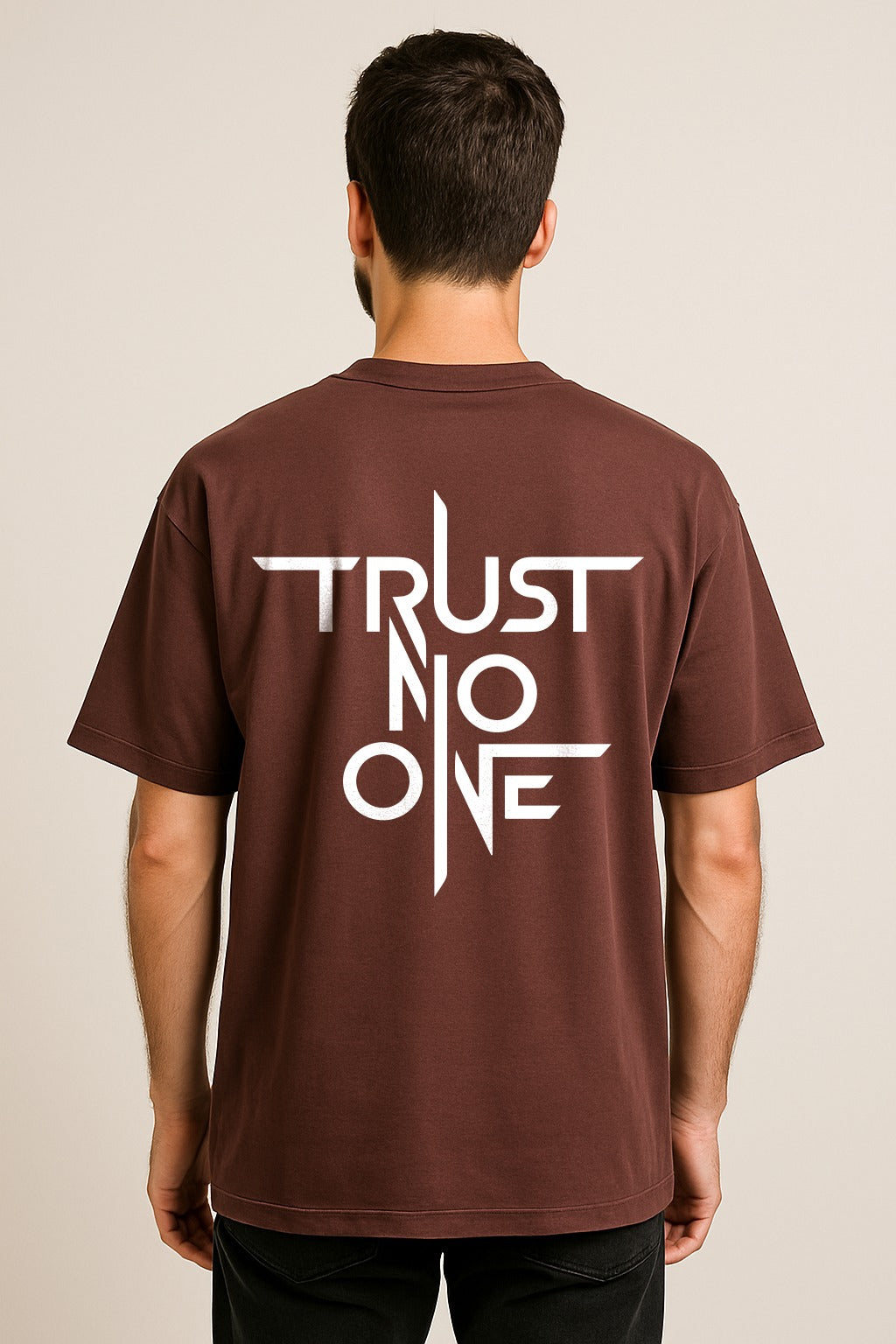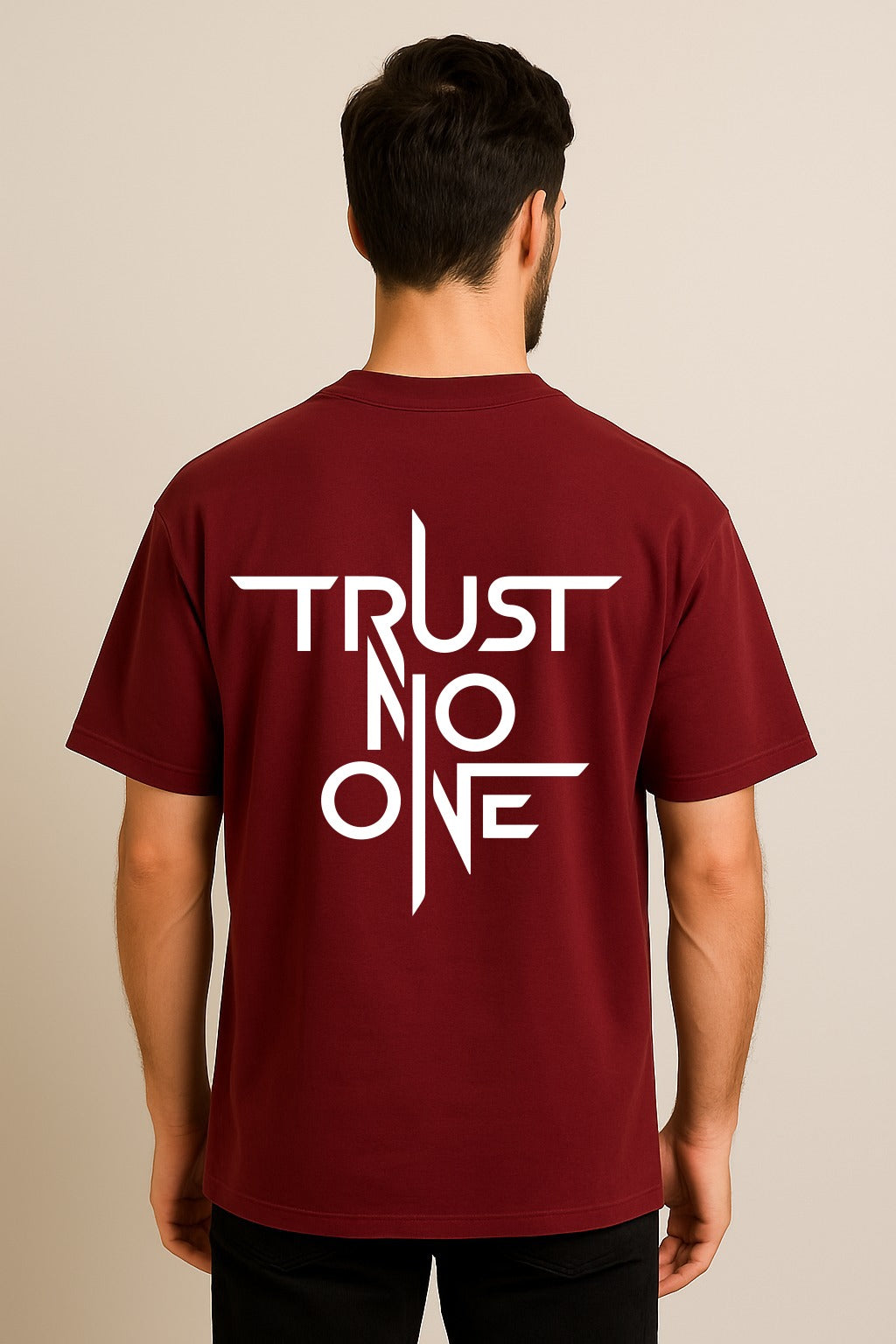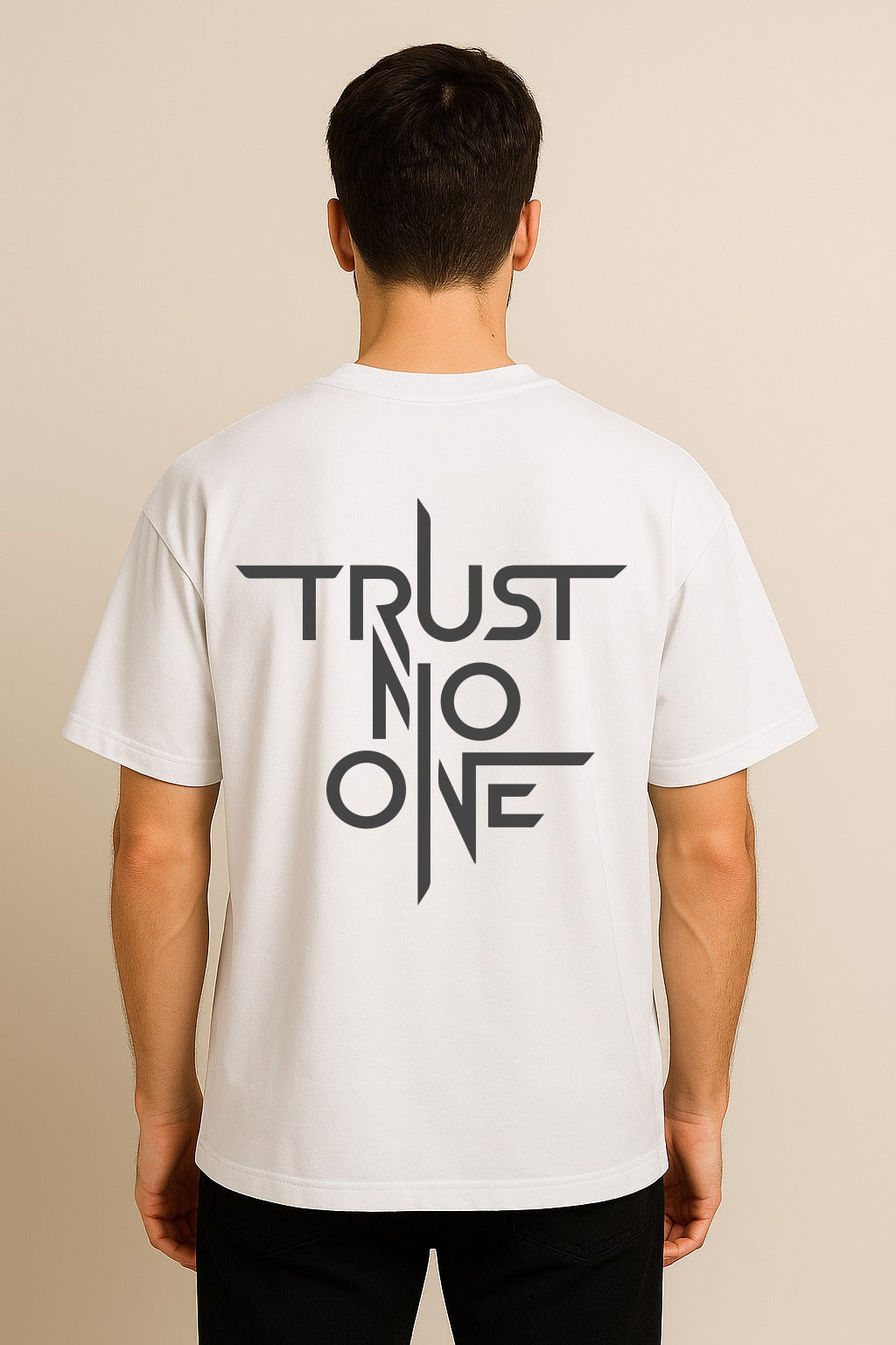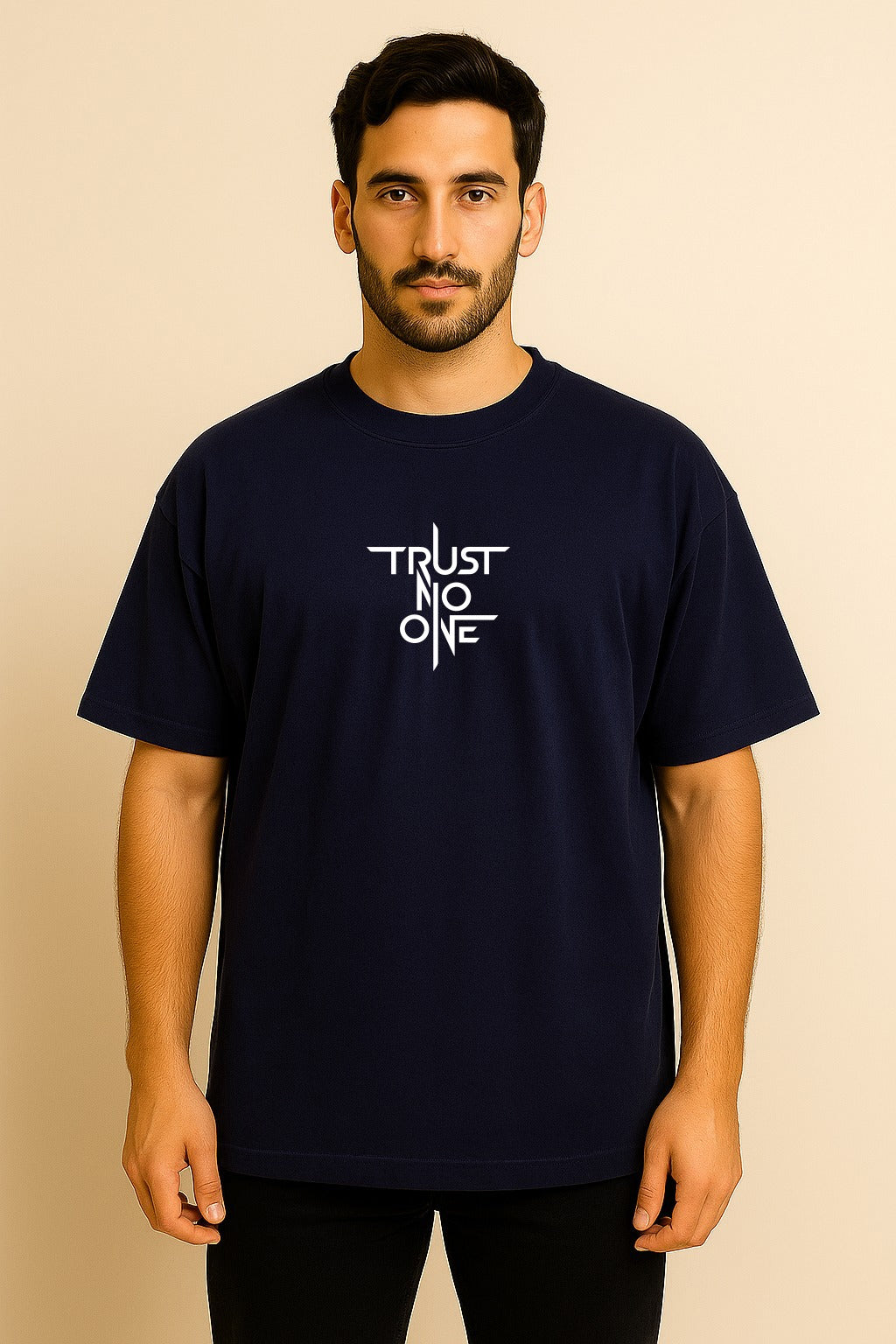 The Vibe Navigate the modern landscape with a sharp, vigilant edge in the Edge-Series “Trust No One” Oversized Tee. This garment is designed for the independent thinker and the urban realist who values self-reliance above all else. Featuring a bold, “Cinematic-Noir” typographic print, the design captures an unapologetic, underground aesthetic that speaks to the strength found in solitude. Its intentional, boxy silhouette provides a powerful, heavy-weight drape that serves as a visual shield, making it a definitive staple for the lone wolf, the night owl, and anyone who demands a wardrobe that reflects a resilient and discerning mindset.